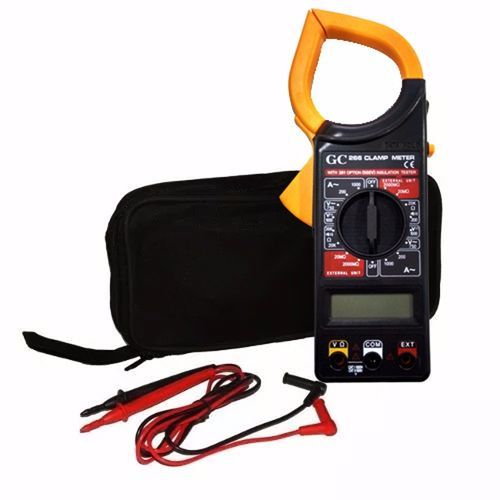 Alicate amperímetro com estojo, ideal para medições elétricas precisas de corrente, tensão e resistência. Indicado para eletricistas, técnicos e manutenção elétrica. Prático, seguro e portátil.