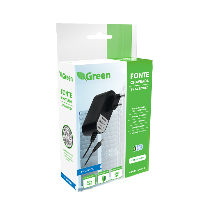 A fonte chaveada 12V-1A New Power ll da Green é perfeita para quem busca segurança e eficiência. Possui conector P4 para maior compatibilidade, amperagem real, circuito de proteção universal inteligente contra sobrecarga e conta com o recurso QSO, garantindo o funcionamento completamente silencioso.
