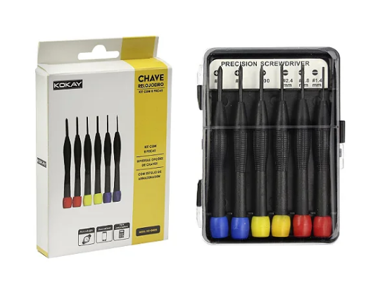 Apresentamos o Kit Chave Relojoeiro com 6 Peças, uma ferramenta essencial para profissionais e entusiastas da relojoaria. Este kit foi projetado para facilitar a abertura e o reparo de relógios, oferecendo precisão e praticidade em cada uso.