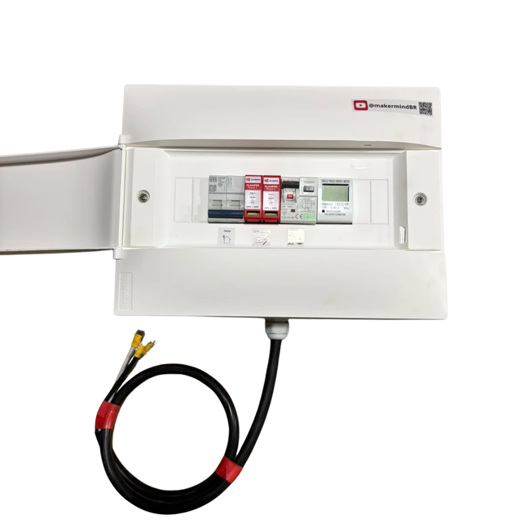 QUADRO DE PROTEÇÃO PARA WALLBOX OU CARREGADOR PORTÁTIL – CABO PP INCLUSO E JÁ CRIMPADO – TOMADA 220V + MEDIDOR DE ENERGIA – O MAIS COMPLETO DO BRASIL – YOUTUBE MAKERMIND